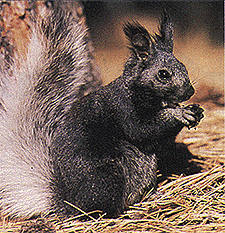 The Kaibab squirrel (Sciurus aberti kaibabensis, left) became geographically isolated from the common ancestor with its closest relative, the Abert squirrel (Sciurus aberti aberti, right) in the North Rim of the Grand Canyon about 10,000 years ago. Since then, several distinguishing features, such as the black belly and forelimbs have gradually evolved.